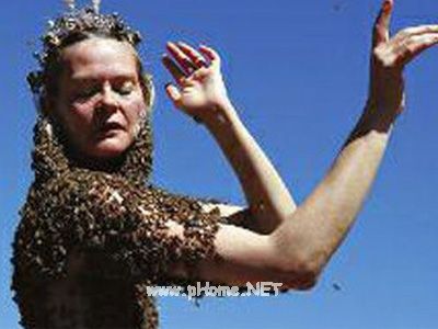44歲的「莎拉」來自?shī)W勒岡州的養(yǎng)蜂人家,最近她公布了一組照片,其中可見她全身爬滿了大約一萬兩千只蜜蜂,「莎拉」并且自創(chuàng)了一種舞蹈,聲稱可以進(jìn)行深度治療。不過,「莎拉」也承認(rèn),跳舞時(shí)經(jīng)常被蜜蜂叮咬很痛,同時(shí)她也警告一般人不要擅自模仿這樣跳舞。「莎拉」還表示,希望能為保護(hù)蜜蜂盡一點(diǎn)棉薄之力。