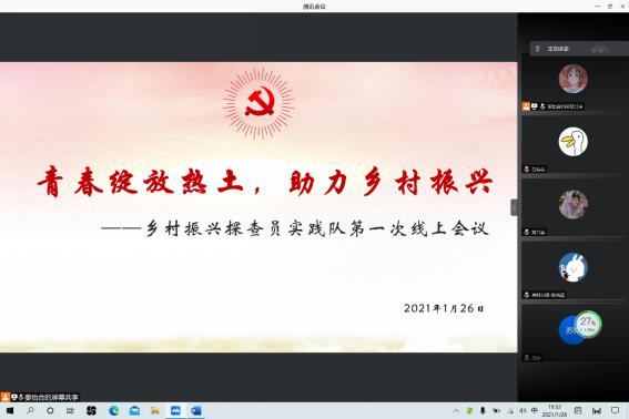 曲園學子三下鄉:把握發展機遇,探索鄉村振興從湊大學生山東1月31日電(通訊員 呂倩倩) 2020年11月23日,隨著貴州省政府宣布最后幾個縣順利脫貧,我國順利地拿下脫貧攻堅戰。但是,絕對貧困的消除,卻并不意味著相對貧困的消除,而當今的中國經濟飛速發展,城鄉發展不平衡加劇,實施鄉村振興戰略,是解決新時代我國社會主要矛盾、實現“兩個一百年”奮斗目標和中華民族偉大復興中國夢的必然要求,具有重大現實意義和深遠歷史意義。為加深對鄉村振興戰略的理解,深入了解鄉村戰略具體的實施措施及意義,曲阜師范大學的學子自發地組成鄉村振興探查員實踐隊,準備前往青島即墨的蓮花村及前南莊村,實地探究鄉村振興戰略的實施。在前往實踐地前, 為加深實踐隊員對本次實踐內容的理解,保證社會實踐工作順利進行,2021年1月26日,曲阜師范大學鄉村振興探查員實踐隊首次線上會議順利舉行。