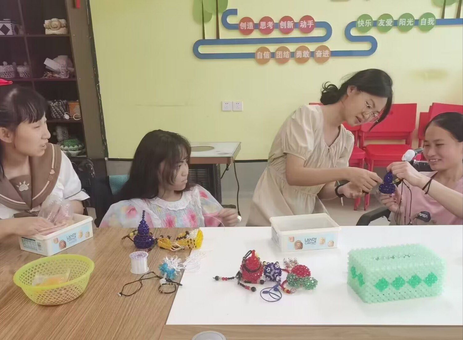 在與福利院的孩子們相處期間實踐團成員既是學生們的老師,也是弟弟妹妹的好哥哥、好姐姐。在這趟旅途開始之前,實踐團事先事先與福利院取得了聯系,獲得了福利院的支持,取得了對學生們的最初的了解,實踐團的成員事先在網上查詢了一些與福利院孩子們患有相同問題的孩子的生活,學習該如何與孩子們相處。在經過最初忙碌的準備,實踐團成員按照預定計劃到達了福利院,福利院的孩子們卻是給了成員們驚喜:抵達福利院不久,孩子們就偷偷帶著水來到了我們這里。這讓成員們認識到他們是很有愛的,愛人之人是富足之人,孩子們有著超出預期的幸福感,或許在此之前他們已經獲得過無數的社會溫暖了吧。在教學期間,他們也展示出來了出乎意料的學習能力,他們接受信息的速度相比于身體無恙的人也是毫無遜色,原定的課程孩子們總能早些完成,高質量的完成。多些的時間,成員們也不愿閑著,與孩子們嘮嘮,對孩子們多謝了解,完完全全的融入他們的生活。向分享我們的一些生活,告訴孩子們世界很美好。與他們分享一些勵志的殘疾人故事,又讓人驚訝的是:孩子們了解很多很多類似的故事,甚至一些很少見的,如張海迪、尼克·胡哲、李志華等。孩子們知道他們比常人少些優勢,所以孩子們更加相信努力能夠改變命運,世界對他們不公,卻使他們在努力的這一條路上比誰都走的更加堅定。
