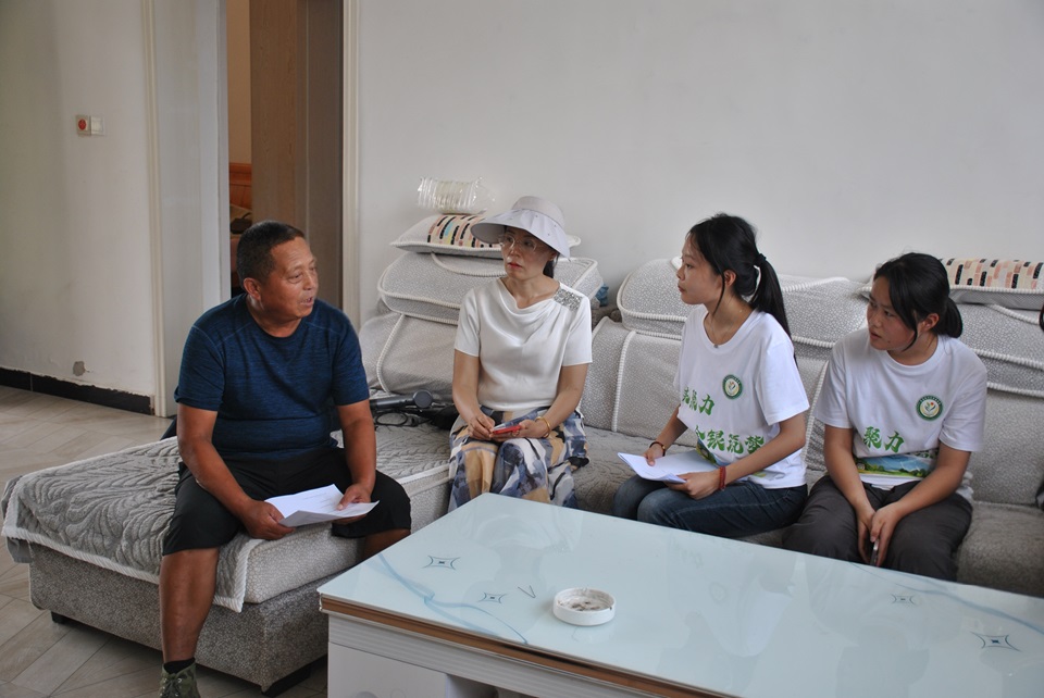 圖為團隊學生在鄭城鎮四合村農戶家里進行走訪調研。陳丹陽供圖