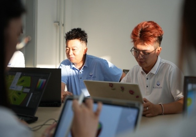 會(huì)上,梁博老師首先結(jié)合周一村的地域特色展開分析:“周至獼猴桃是當(dāng)?shù)氐慕鹱终信疲瑝L不僅要展現(xiàn)果實(shí)的形態(tài)之美,更要融入村子的田園風(fēng)光與文化底蘊(yùn)。”他以樓觀鎮(zhèn)的農(nóng)耕傳統(tǒng)為切入點(diǎn),建議學(xué)生在設(shè)計(jì)中加入獼猴桃藤蔓纏繞、村民采摘等生活化場(chǎng)景,讓畫面既有視覺吸引力,又能喚起村民的情感共鳴。