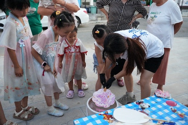 實踐期間,實踐團成員針對周一村文化氛圍活力低下的現(xiàn)狀,精心策劃并成功舉辦了一場別開生面的漆扇制作活動。漆扇,這一承載著中國傳統(tǒng)文化的藝術(shù)品,成為了連接實踐團與周一村村民與兒童的橋梁。在實踐團成員們的耐心指導(dǎo)下,兒童不僅學(xué)習(xí)了漆扇制作的基本技巧,還充分發(fā)揮自己的創(chuàng)意與想象力,制作出了一扇扇獨一無二兼具傳統(tǒng)韻味和現(xiàn)代審美的漆扇作品。