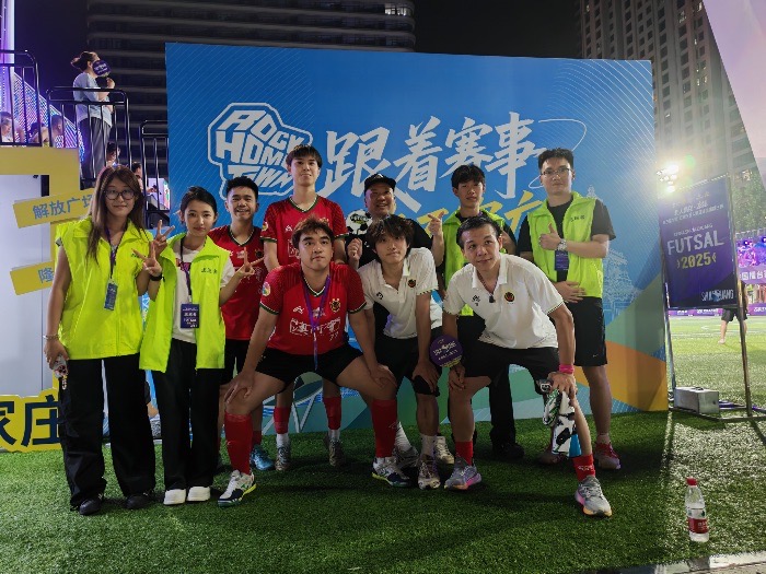 在第三屆中國石家莊五人制足球賽全國擂臺賽期間(6月28日、6月29日,7月5日、7月6日、7月12日、7月13日、7月19日、7月20日、7月26日、7月27日、8月2日、8月3日),先后迎來石家莊華爾道夫、福建廈門桃李春風(fēng)、吉林長春順興、香港栢禧等多支隊伍同臺競技,賽事歷時12天,涵蓋19場精彩對決,既展現(xiàn)了五人制足球的靈動與激情,也為各地球隊搭建了交流切磋的平臺。“綠茵先鋒踐行隊”深度參與賽事全流程保障,以專業(yè)態(tài)度和細(xì)致行動,為這場體育盛會注入溫暖力量。