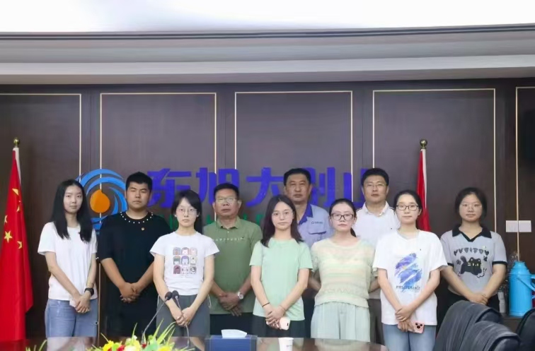 圖為實踐隊成員與東旭大別山產(chǎn)業(yè)園負(fù)責(zé)人合影