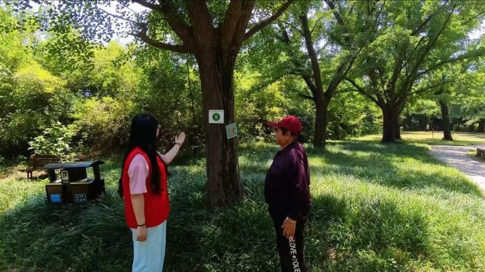 銀杏古園行,共建生態之美“為了您,這座古銀杏群已等了千年。”實踐團成員們懷揣著對自然的敬畏之心踏入泰興古銀杏公園,開展生態辨識研學活動。1.1萬株百年銀杏與兩株千年古樹傲然挺立,虬枝舒展間,見證著歲月的更迭。團隊成員們穿梭于銀杏林深處,利用數字軟件“花伴侶”開展生態辨識。同時,團隊成員邀請游客們一同參與生態探索,俯身細察扇形葉片的精致脈絡,認真記錄數據,探尋“植物活化石”歷經時代更迭而不朽的生存智慧。從銀杏的葉片到林間其他花草的生長特性,每一次辨識都是與自然的一次深度對話,讓保護自然的種子在每個人心中悄然生根,為古銀杏公園增添了一抹溫暖的人文綠意。