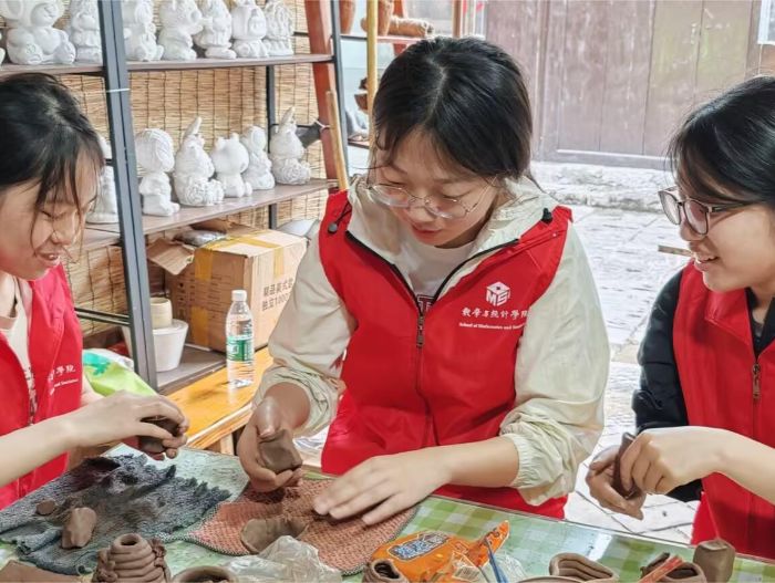 圖為團隊成員體驗泥塑制作 (數學與統計學院 王青青供圖)