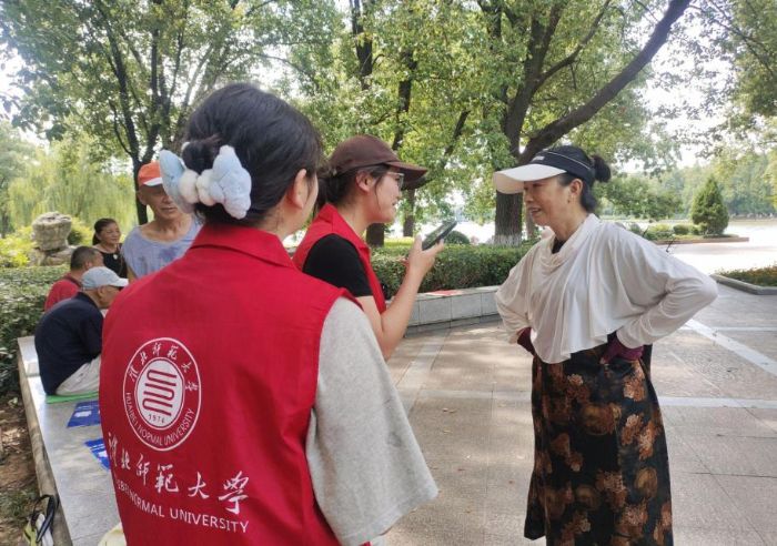圖為實踐團隊在蓮湖公園開展文化宣傳活動(數學與統計學院 鄧雨歆 供圖)