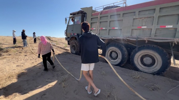 圖為長安大學赴甘肅民勤“‘青’走治沙路,共架生態‘橋’”暑期實踐隊跟隨本地人一起為梭梭樹澆水。李晨露供圖