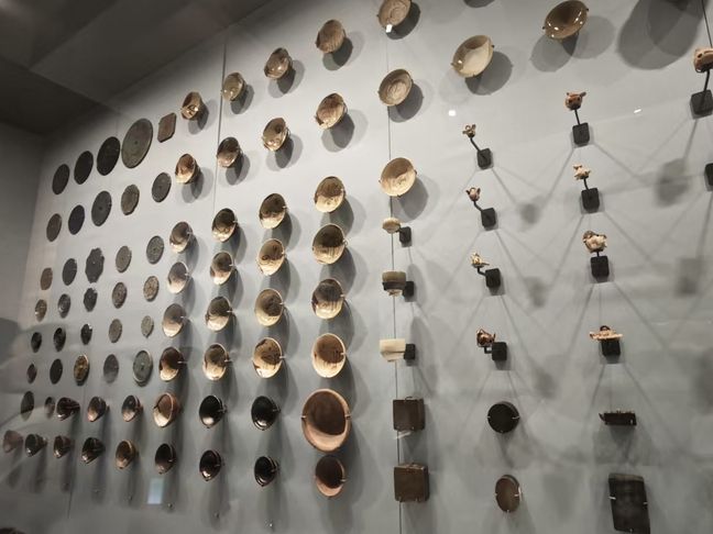 隊員們隨后各自前往其他地方的博物館進行調研。在寧夏博物館中,我們看見了西夏壁畫中的牛耕圖,它描繪了西夏勞動人民用“二牛抬杠”方式耕作的場景,這種牛耕方式提高了勞動效率,增加了糧食產量,為人口增長提供了保障,體現了牛耕在西夏農耕文化中的重要地位;寧夏的特色美食也與糧食密切相關,如油香、蓋碗茶等。這些美食不僅體現了寧夏的飲食文化特色,也反映了糧食在人們日常生活中的重要性。