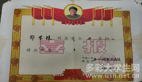 圖為老兵鄭學林的立功獎狀
