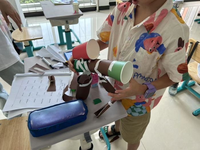他們的作品不僅有可愛動物造型,更有創(chuàng)新的“紙杯炮臺”,展現(xiàn)出孩子們不受拘束的創(chuàng)造力。完成作品后,孩子們興致沖沖地交流創(chuàng)作心得,在交流中,孩子們收獲靈感與快樂,不斷完善自己的作品,教室成了充滿歡聲笑語的小天地。