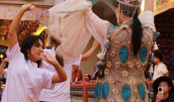 本地同學圍過來看,眼里閃著好奇的光,我便拉著她們的手教起來。從最簡單的“移頸”到腳步的“點踏”,看著她們漸漸舒展的身姿,我忽然懂了:文化從不是鎖在博物館里的符號,是能在掌心傳遞的溫度。就像古城墻縫里鉆出的花,不同的根須纏在一起,反而開得更旺。而我跳的每一步,都是想讓這份旺,再蔓延得遠一點。