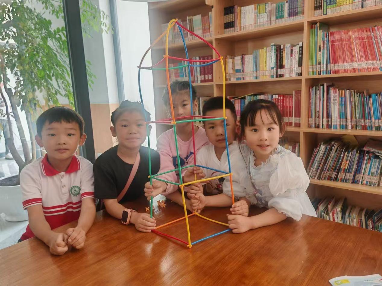 制作過程充滿挑戰,為解決結構穩定性問題,學生們自覺分工合作,創新性探索方案,有的將吸管擰成波浪形等多樣形狀,有的將剪切后的吸管靈活拼接,有的使用膠水進行二次加固,形成了各式各樣的“建筑成果”。看著自己和小伙伴合作搭建的作品,小朋友們的眼睛里閃爍著耀眼的光芒。