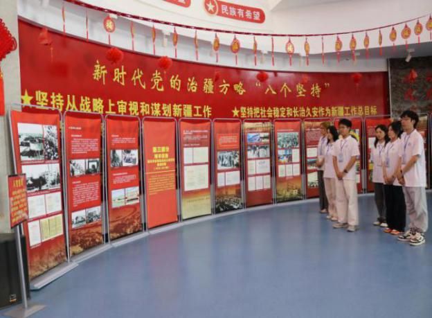 在張騫紀(jì)念館,實踐團(tuán)循著歷史脈絡(luò),透過文物與史料,重溫了先輩們與新疆的不解之緣。從張騫“鑿空西域”促進(jìn)文明交匯,到林則徐流放伊犁時踏遍天山、繪制輿圖推動邊境開發(fā),再到左宗棠抬棺出征收復(fù)新疆、力促建省固邊,讓同學(xué)們深刻認(rèn)識到,新疆歷來是多民族交往交流交融的家園,促進(jìn)民族團(tuán)結(jié)是流淌在血脈中的傳承。張騫“持漢節(jié)不失”的堅韌、林則徐“興修水利,推廣墾荒”的擔(dān)當(dāng)、左宗棠“引得春風(fēng)度玉關(guān)”的壯舉,更讓同學(xué)們真切感受到先輩們“守土有責(zé)、護(hù)民為本”的家國情懷。