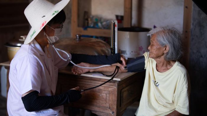 實(shí)踐隊員給村民量血壓
