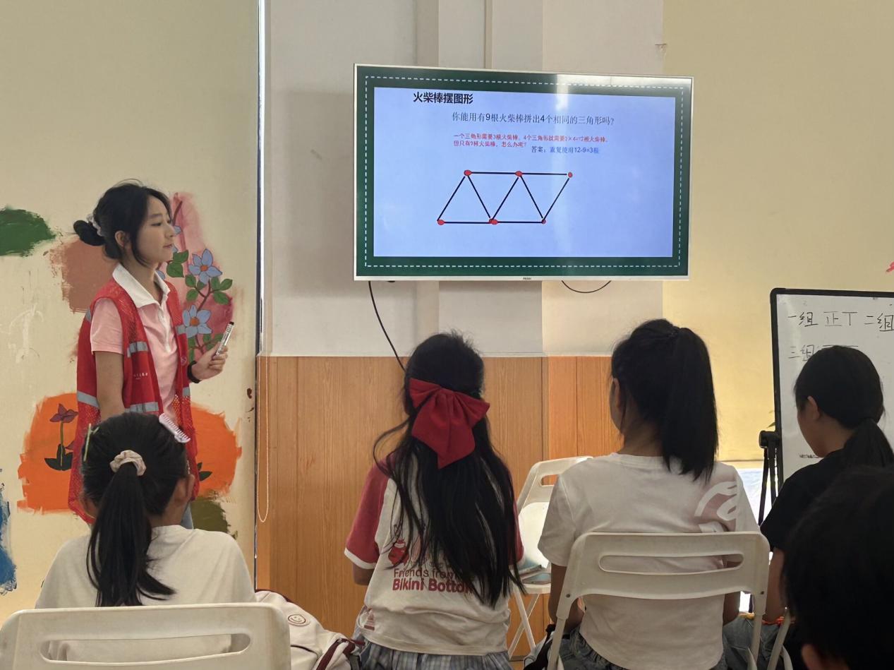 “助力黔行”志愿服務隊成員 楊雅茹7月18日 星期六 雨夏雨淅瀝,敲打著金銀山少兒活動中心的玻璃窗,蜿蜒的水痕模糊了窗外的景象。室內,柔和的燈光驅散了雨天的陰沉,均勻地灑在課桌上,映照著一張張稚嫩而充滿期待的小臉。懷揣著準備好的課件和一束色彩繽紛的火柴棒,我心中鼓動著熱切的期盼——今天,我要為這里的孩子們帶來一堂數學趣味課,祈盼能在他們心田悄然播撒下好奇與探索的種子。