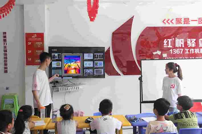支教期間,實踐隊員們向孩子們講解專業美術知識,介紹素描作畫步驟,給孩子們帶來不一樣的美學體驗,幫助他們動手創作出一幅幅充滿童心的作品;以“抗擊疫情手抄報”為主題,普及防疫知識,與孩子們一起繪制內心感受,表達對逆行者們的敬意;同時,實踐隊員們開展了線上課程,一同為青島市即墨市通濟郭莊小學和紅帆驛站魯慈兒童樂園的孩子們介紹傳統剪紙文化,輔導他們制作剪紙;開展墻繪活動,與孩子們一起描繪五彩斑斕的童話世界,寄托實踐隊員們對孩子們美好的祝福。