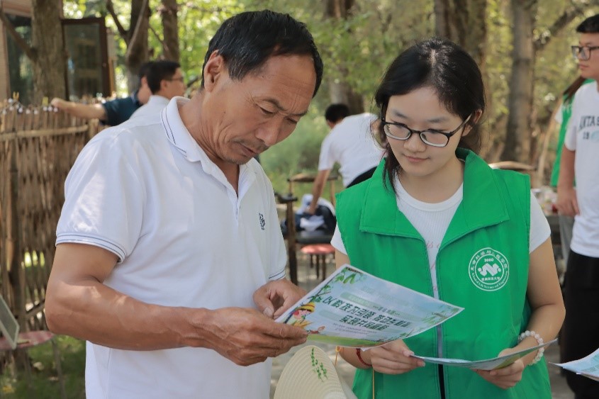 (實(shí)踐團(tuán)成員向農(nóng)戶講解中央一號文件)
